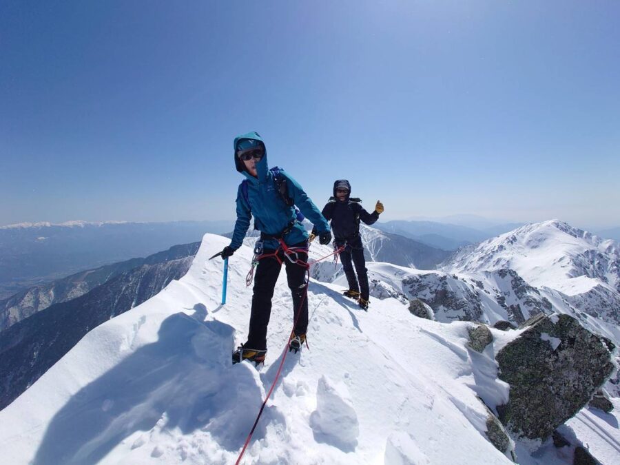 宝剣岳では短いですが、バリエーション登山の気分を味わえる岩と雪のミックスした部分もあり、雪山の醍醐味がたっぷり詰まった内容です。