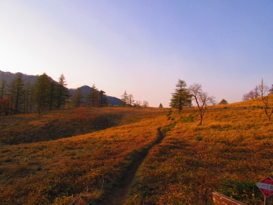 稜線は森林限界をほぼ超えない標高で、終始木々に囲まれ山深さを体験できるのは奥秩父ならではの魅力です。この笠取山周辺は多摩川、荒川、富士川と3つの水系に分かれる分水嶺地。かつて水源巡視の小屋として利用されていた笠取小屋のテント場で静かな夜を一晩テント泊。