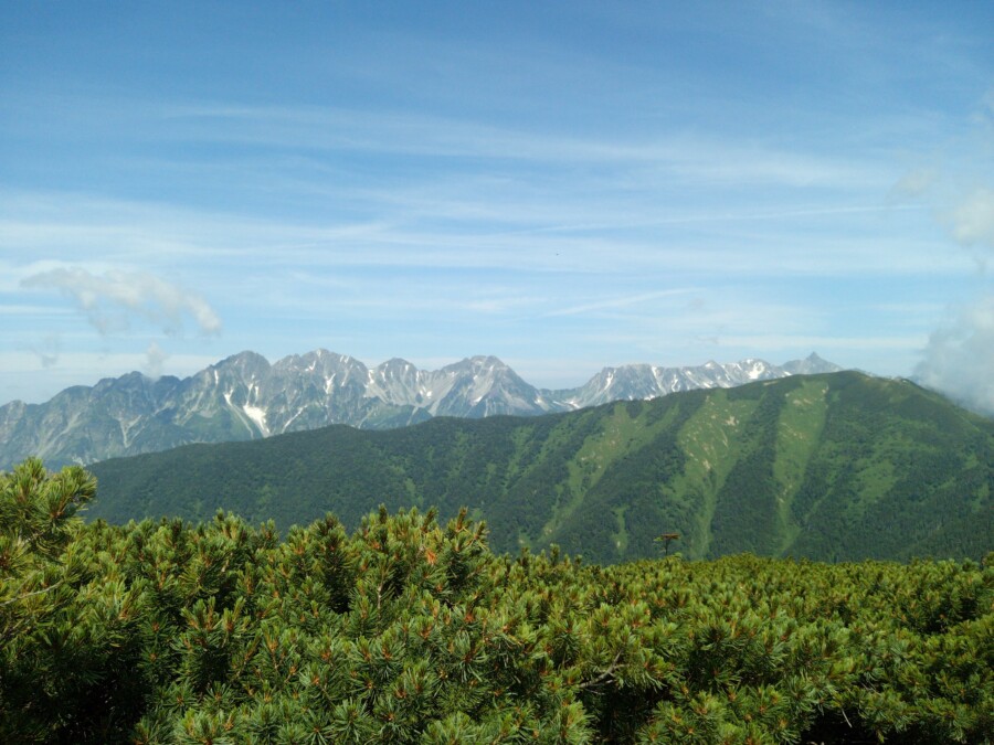 アルプスでトレイルランといっても大半は軽装のファストハイクになってしまい、実際に”走れる”ポイントは少ないのが事実。林道からのアプローチ後に樹林帯を徐々に高度を上げていき、頂上でさえハイマツに覆われている緑のアルプスです。岩場はありません。このトレイルであれば他のアルプスと比べ無理なく爽快に走れるはずです!